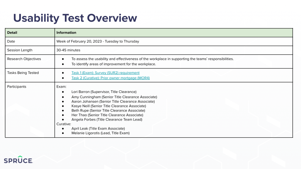 We conducted nine 30-45 minute usability tests with exam and curative team members, asking them to complete two distinct tasks. Here's what we learned: