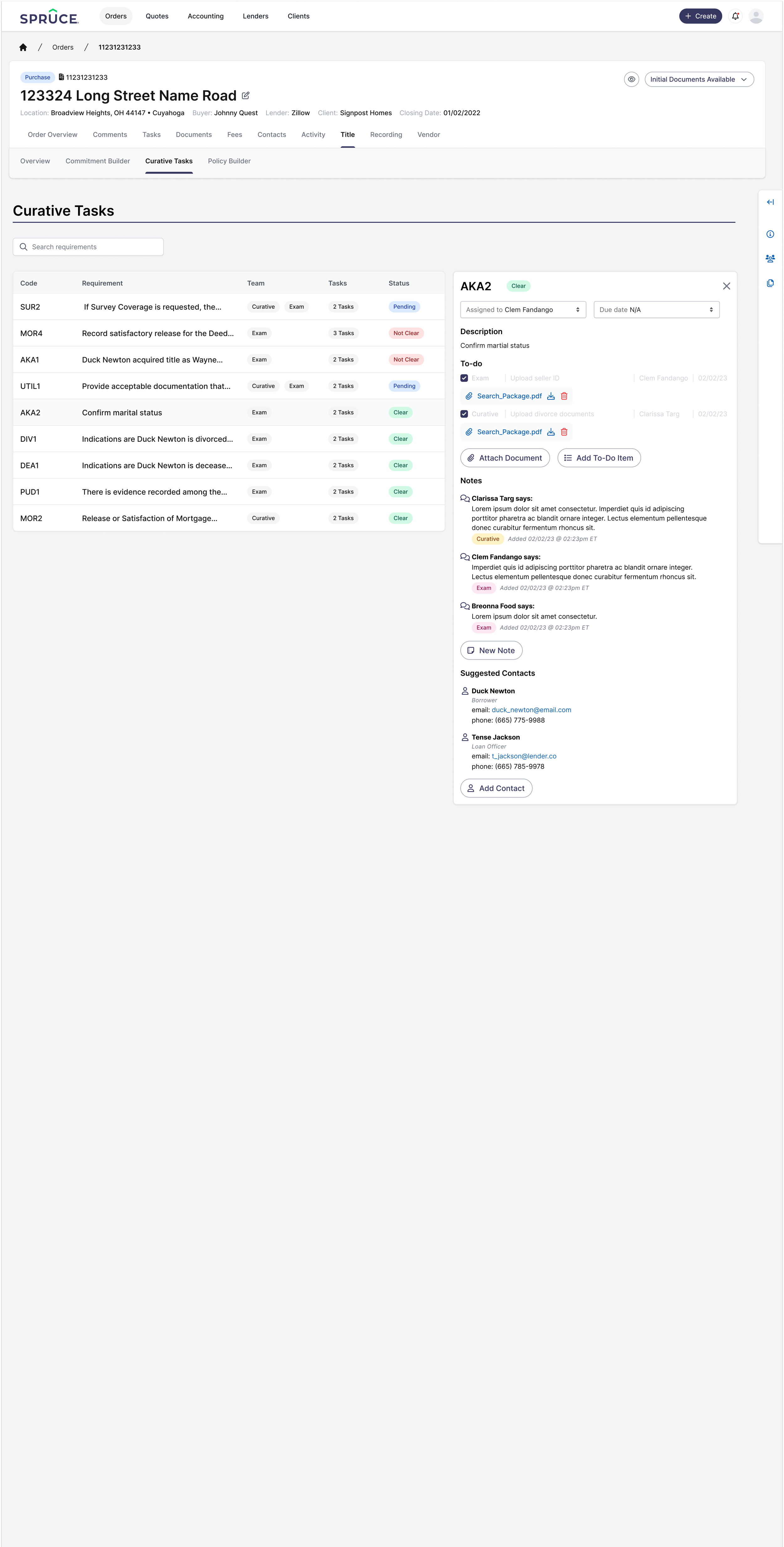 After extensive user testing, interviews, and brainstorming sessions, we refined these features to better address user needs, creating an intuitive workspace that incorporates and enhances the necessary tools for title clearance work.