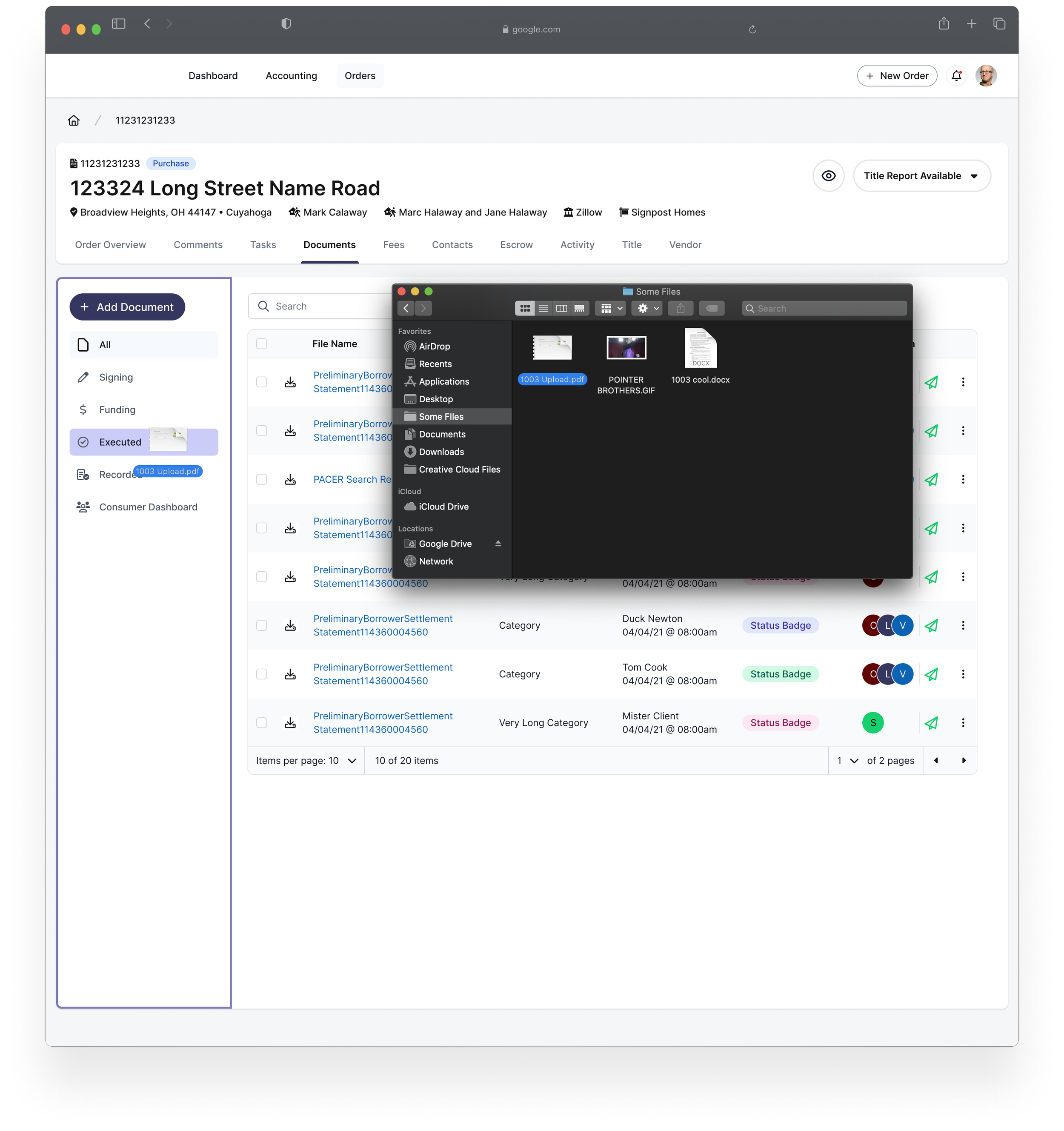 As a result, we were tasked with creating a more streamlined and organized experience for internal users, focusing on simplifying the categorization, management, and sharing of documents essential to completing real estate transactions successfully.
