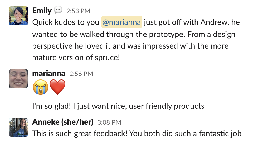Regularly shared design updates and information with the team (without overdoing it in Slack), actively seeking feedback and addressing any questions that arose.
